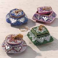 colorful? From the bangles, an idea evolved from “ Designs by Sudha” of lac pocket mirrors reflecting the festival of lights, trinket boxes to hold your do-dads, mini frames for the dresser,